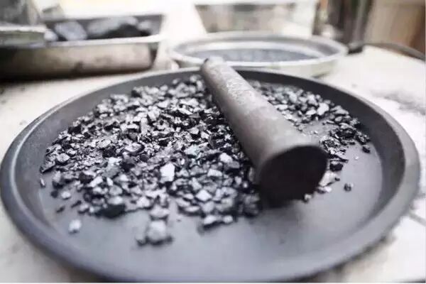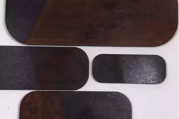 作品名称:托盘 | 材质: 胡桃木,煤,树脂