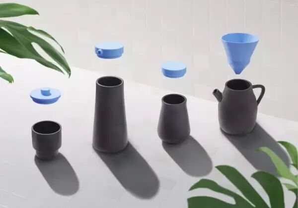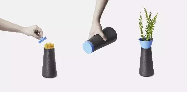 四种不同的器形搭配不同的硅胶盖可以相互置换。在变换交叉使用后可以变成超过16种不同功能的产品,有过滤器的咖啡壶,椒盐罐,酱油罐,存储罐,花瓶,茶壶,杯等等。