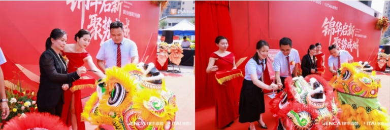 在振奋的舞狮表演后,剪彩仪式正式启动。一众主礼嘉宾移步至展厅正门口,手持金剪,为新程剪彩。金剪开新路,宏图自此展。声声炮声震云霄,礼花四溅现美好,这标志着锦华企业新展厅形象全面落地,开启品牌发展新篇章。