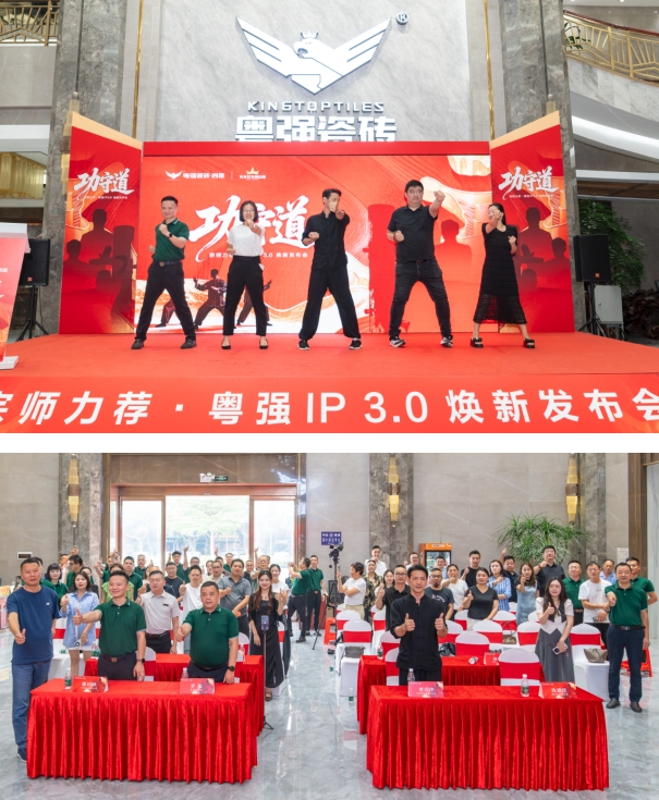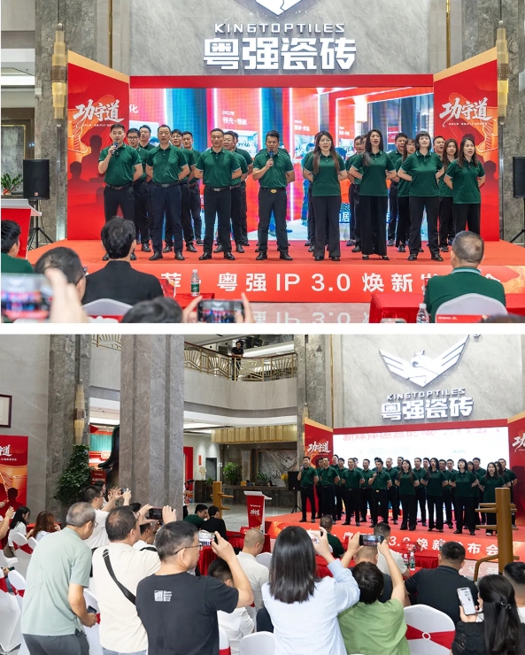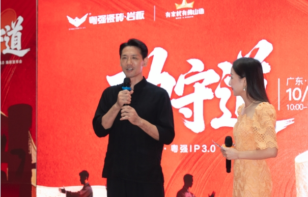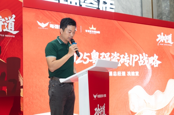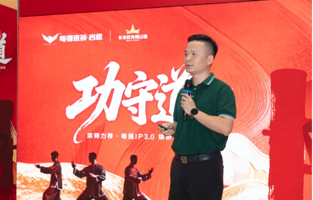 发布会以一曲雄浑有力的粤强之歌《瓷砖一代宗师》大合唱开场,瞬间点燃现场气氛 。集团营销总经理冼建堂先生首先致欢迎辞,阐述了品牌初心与本次IP合作的战略意义 。随后,粤强品牌总经理谢访林先生登台,深度分享了粤强的“功守道”战略:以开拓市场为“功”,以坚守品质与文化为“守”,功守合一,方成品牌长远发展的“道” 。