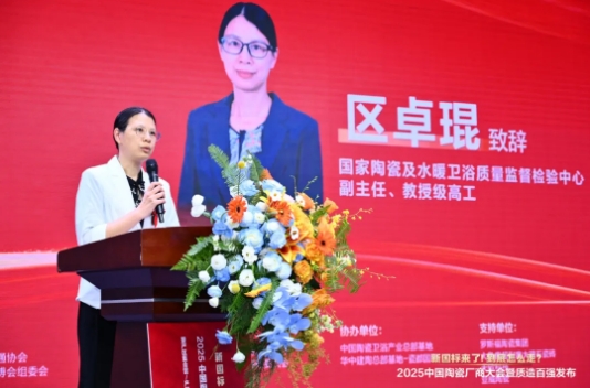国家陶瓷及水暖卫浴质量监督检验中心副主任区卓琨从新国标检测角度为大会奠定专业基调,她指出新国标构建统一质量坐标体系,覆盖主流品类,建立公平竞争标尺,助力破解市场断层,推动形成优质优价,分级竞争的健康生态。