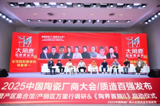 本次大会由中国建筑材料流通协会、中国(佛山)陶博会组委会指导,2025中国陶瓷厂商大会暨质造百强组委会、中国建筑材料流通协会陶瓷卫浴经销商委员会、陶业时讯主办,中国陶瓷卫浴总部、华中陶瓷总部基地瓷都国际协办,国家权威检测机构、全国各大产区行业协会及相关学会、校友会及其领导支持,广东、江西、福建、山东、四川、湖南、湖北、河南、河北等全国产销区头部企业和实力品牌代表、大商齐聚一堂等超300余人现场参与、见证。