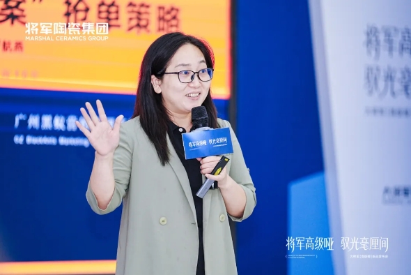 随后,佛山市陶瓷行业协会会长尹虹博士从行业维度深度解读“高级哑”的技术突破与市场价值。他指出,“高级哑”是光感美学的进阶表达,亦是功能与质感协同演进的典范。其背后所体现的精密工艺与用户思维,标志着陶瓷品类在审美升级与性能革新上的又一次重要跃迁。这既是对大将军创新实力的高度认可,也为整个行业树立了新的标杆。