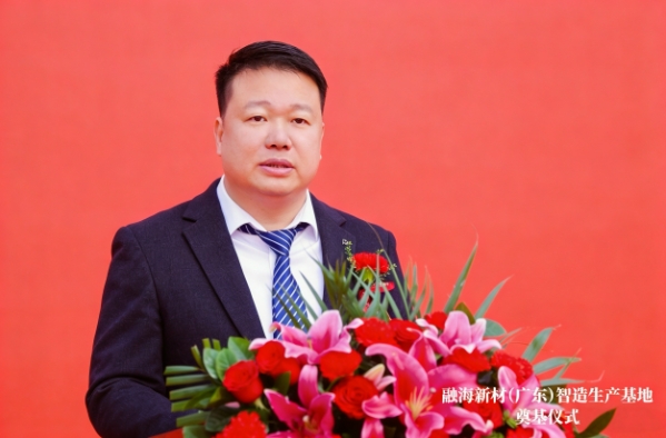之后,融海新材总经理许俊勇介绍智造生产基地整体布局与发展目标。他对到场嘉宾表示感谢,指出基地是融海面向未来的战略新起点,该基地占地 36 亩,总投资规模可观,聚焦智能生产与技术创新,主打 PA66 隔热条、密封胶条等绿色节能建材数字化生产,将构建高效可靠的供应链体系,秉持“以客户为中心”理念,打造值得托付、开放协同、合作共赢的产业平台。