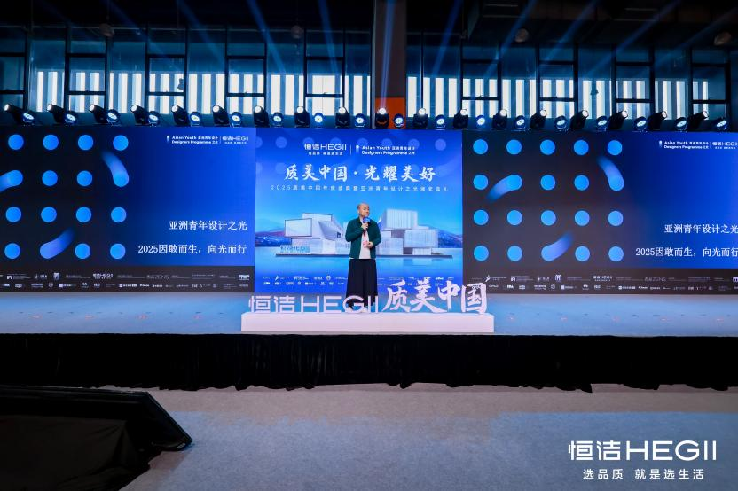 接下来,赛事主办机构代表——广州设计周CEO贺文广先生带来「亚洲青年设计之光」项目的2025年度总结。他首先以三个层次致敬合作伙伴恒洁的“质美”:看得见的产品之美、空间之美;看不见的技术之美;以及更深层的、融入骨血的服务之美。 这份赞誉,源于共同推动行业前进的深切体会。