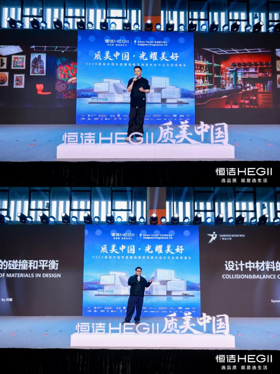 2025年12月5-6日,由恒洁与广州设计周联合呈现的两大盛事「亚洲青年设计之光·2025媒体终选会」「质美中国 · 光耀美好——2025质美中国年度盛典暨亚洲青年设计之光颁奖典礼」,分别在广州设计周「保利馆」一楼1号馆恒洁H-SPACE设计空间、广州设计周「保利馆」一楼1号馆论坛区圆满举行。