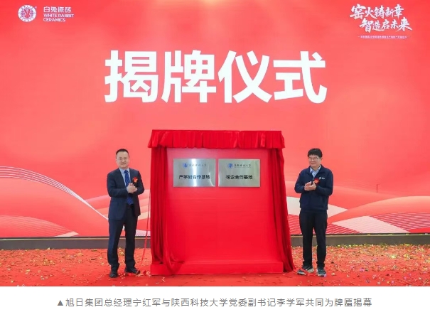 活动现场,旭日集团总经理宁红军与陕西科技大学党委副书记李学军共同为 “产学研合作基地”与“校企合作基地”揭牌,标志着双方在科研创新与人才培养上的合作进入新阶段。