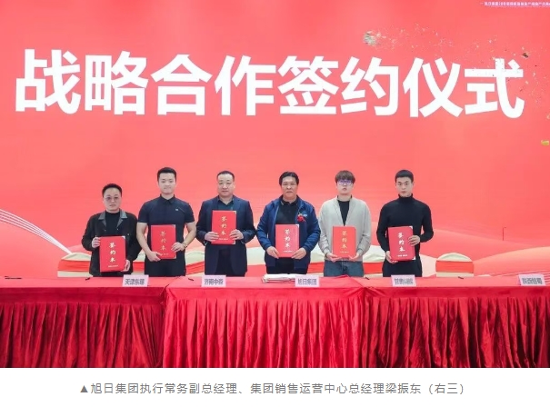 战略合作签约仪式上,旭日集团执行常务副总经理、集团销售运营中心总经理梁振东与来自华东、西北、华西、华北的客户代表正式签订战略合作协议,一同开启合作共赢的新蓝图。