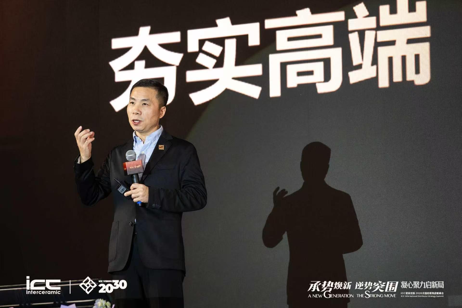最后,ICC瓷砖岩板董事长何乾先生发表总结致辞,从战略高度为品牌发展指明方向,强调董事会将持续鼎力支持,并传递了与经销商伙伴共赴2030顶峰之约的决心。
