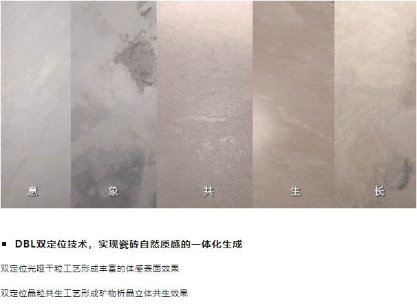 【意象共生】主题系列由意、象、共、生、长五大子系列构成,依托最具前沿创新性的DBL双定位技术,研发出舒缓柔光、触觉型肌理,实现空间材质到情感载体的升维,构建起从情绪表达到空间叙事的完整体系。