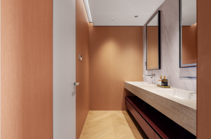 本案为350m改善型复式住宅,定位新中式风格。设计以"东方雅韵,宜居之本"为核心,摒弃繁琐雕饰,注重空间开阔感与光影流动。萃取传统元素精髓,千里江山图,结合现代生活习性,运用天然材质与素雅色调,营造出宁静致远,大气舒朗的居家氛围。对楼上楼下的交互也做了较大的调整,旨在为业主打造一处可安放身心的诗意栖居之所,也以旋转楼梯为线索,串联起新中式的意境,轻奢的质感与现代的功能性。这不仅仅是一处居所,更是一个关于融合与创新的设计实践,展示了当代中国居住空间如何平衡传统精神与现代生活需求,创造出既有文化深度又符合当代审美的居住体验。