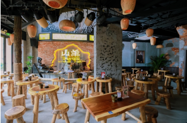 设计说明:山羊民谣酒吧,是一处隐于城市角落的温暖据点。它不只是一间酒吧,更是一个用音乐、故事与酒盏交织而成的微型社会。