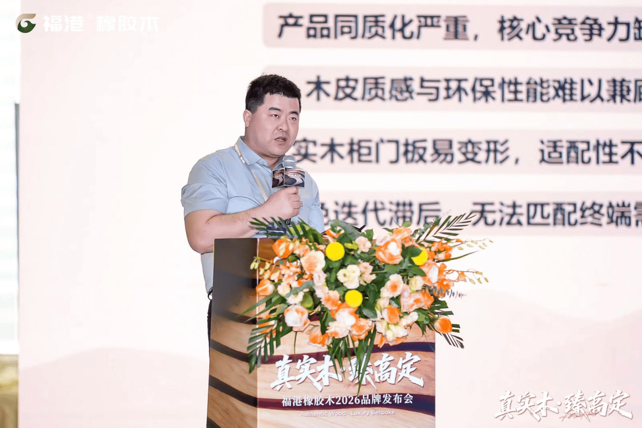 立足行业趋势与全产业链优势,福港橡胶木正式发布2026年度品牌战略,完成品牌发展的关键升维。福港橡胶木品牌战略顾问吴向勇现场深度解读品牌战略全景规划,明确了从“中国橡胶木板材第一品牌”向“中国实木板材第一品牌”跨越的核心路径。