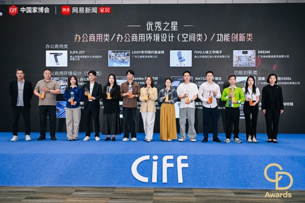 (华人设计师网报道)3月29日,2026CIFF广州家博会「华钻之星」荣誉盛典(办公商用展、设备配料展专场)在广交会展馆璀璨启幕。湖南大学设计艺术学院教授、博士生导师 何人可;中央美术学院城市设计与创新研究院院长 王中;PLAT ASIA联合创始人、南海美术学院客座教授 郑东贤;网易家居&网易设计全国总编辑 胡艳力;中国对外贸易中心集团有限公司旗下中贸展副总经理 邓晶晶与各大企业嘉宾、设计师与媒体嘉宾共聚一堂,多项重磅荣誉现场揭晓,共同见证中国好设计的荣耀绽放。华人设计师网现场报道了本次活动。