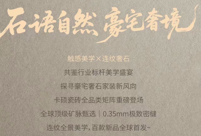 当前国内高端建材市场同质化竞争加剧,价格战内卷现象突出,多数品牌仍停留在产品参数、价格层面的低维度竞争。卡硕此次以场景化体验为抓手、以全链路服务为核心的战略升级,跳出了传统建材品牌的产品竞争逻辑,转向空间价值与服务价值的深耕,为行业向高端化、服务化、全球化转型提供了可参考的新范式。未来卡硕瓷砖将持续以战略升级为核心引擎,以多品牌布局为支撑,以全品类奢石产品为基础,持续深化全球奢石矿脉资源整合,加码连纹工艺与定制技术研发,完善全链路服务体系,以 “成为全球豪宅空间首选奢石品牌” 为核心目标,推动中国高端瓷砖品牌的全球化发展。