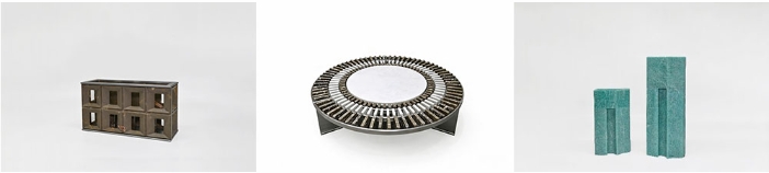 “万神殿” 烛台(左);“仲夏” 咖啡桌(中);“海浪” 花器(右)