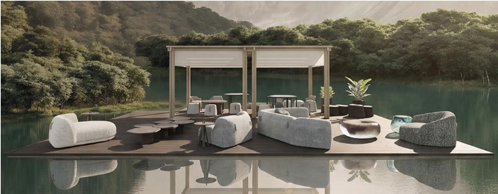 系列取东方山水之灵,线条复刻山石肌理,结合模组化巧思,可随心组合:独坐静享、围坐相聚皆可,布局可繁可简、可大可小,真正做到让空间适配人,而非让人适应空间。作品不只是一套户外产品,更是一种生活方式,传达人与自然共生、东方与西方对话、传统与当代交融的设计,并在山水意境中建立属于当代户外生活的平衡,体悟 “心归山水”的生活诗意。
