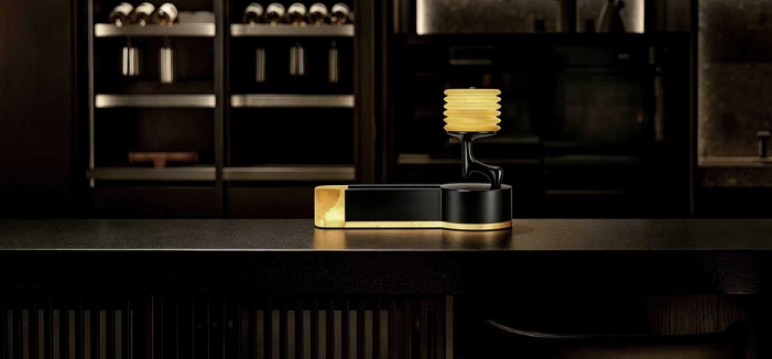 作品以雪茄品鉴为灵感,雾面黑金属俐落框架配透光底座与隐藏暖光灯带,让雪茄在柔和光影中被细致衬托;凹槽设计也精准对应雪茄尺寸,令每一次取放与陈列都更具仪式感。作品可与去年发布的 “醉” 适配使用,为威士忌与雪茄的双品鉴时刻营造沉浸式氛围,并延伸出更具层次的生活场景。“享” 已于moorgen摩根全新米兰展厅与同系列产品一同展出。