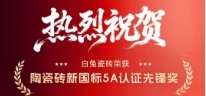 白兔瓷砖荣获“陶瓷砖新国标5A认证先锋奖”,以高品质引领行业向上