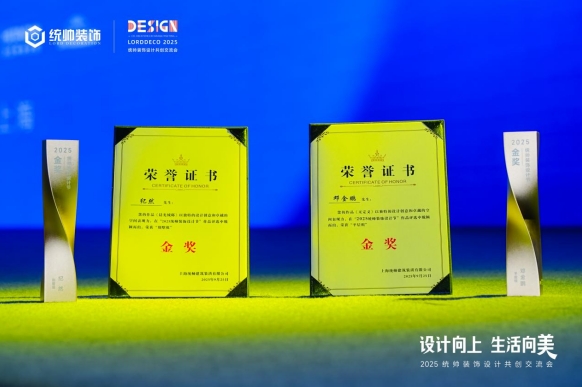 本次评选分为“别墅组”和“平层组”进行独立评审,聚焦于创意与概念、功能与实用、美学与艺术、技术与落地等多个维度。通过多轮评选与终评答辩,最终统帅装饰设计师纪然、邓金鹏分别荣获 “别墅组”和“平层组”金奖。