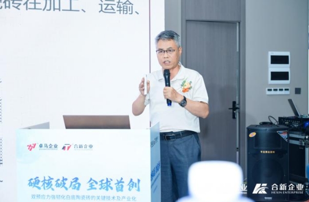 卓马集团总经理冼伟潮代表企业致词。他分享道,卓马深耕陶瓷领域多年,始终以“技术攻坚”为核心竞争力,此次双预应力强韧化技术的突破,是企业“以创新破局”的生动实践——从技术构思到落地攻坚,卓马始终以民族陶瓷企业的担当,为行业树立“技术驱动发展”的标杆。