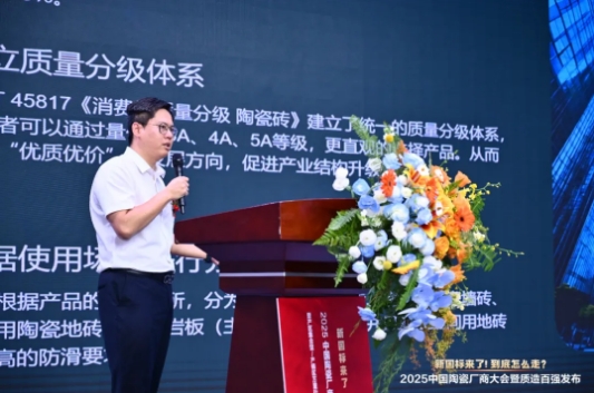 国家陶瓷及水暖卫浴质量监督检验中心副主任区卓琨从新国标检测角度为大会奠定专业基调,她指出新国标构建统一质量坐标体系,覆盖主流品类,建立公平竞争标尺,助力破解市场断层,推动形成优质优价,分级竞争的健康生态。