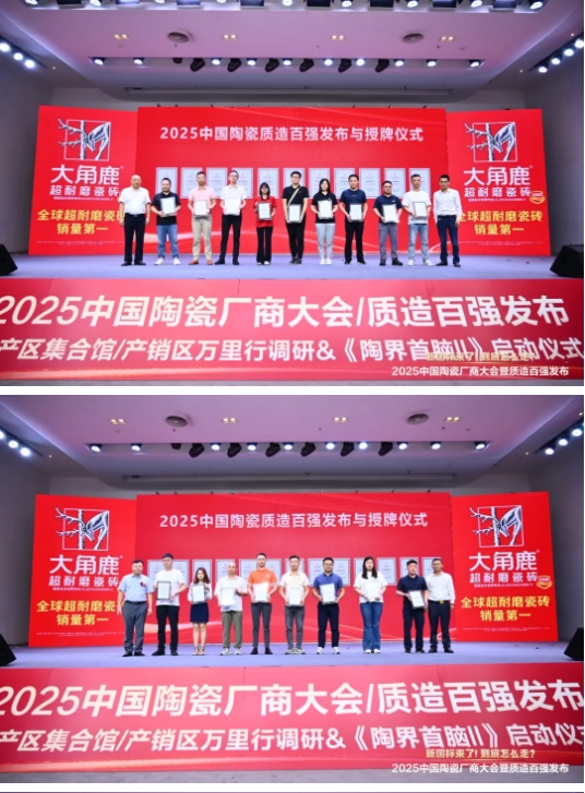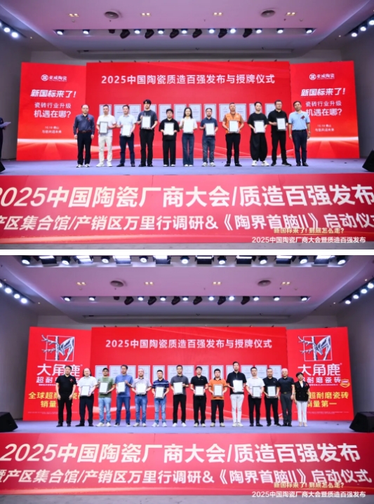 作为对中国陶瓷坚守品质企业的致敬,大会隆重发布、授牌了“2025中国陶瓷质造百强” 榜单并进行了授牌仪式,这些行业头部企业、产区实力企业入选: