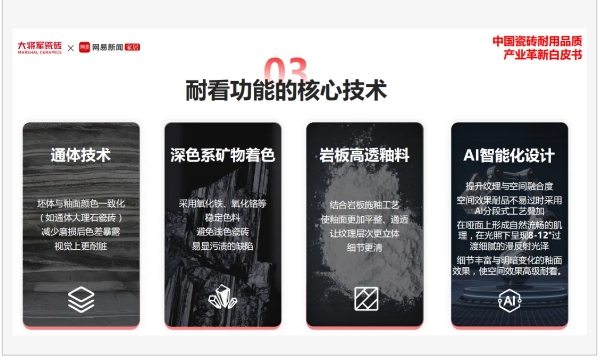 作为大会的另一高光时刻,网易家居、网易设计全国总编辑胡艳力正式发布《2025中国瓷砖耐用品质产业革新白皮书》。该白皮书由大将军瓷砖联合权威媒体与专业研究机构共同编撰,是行业首部聚焦“耐用”价值的系统性产业指南。她强调,耐用不仅是产品性能的体现,更应成为品牌价值的核心维度。这份白皮书立足当下、面向未来,不仅总结了当前技术成果,更为行业树立了可衡量、可追溯、可信赖的品质新标尺。