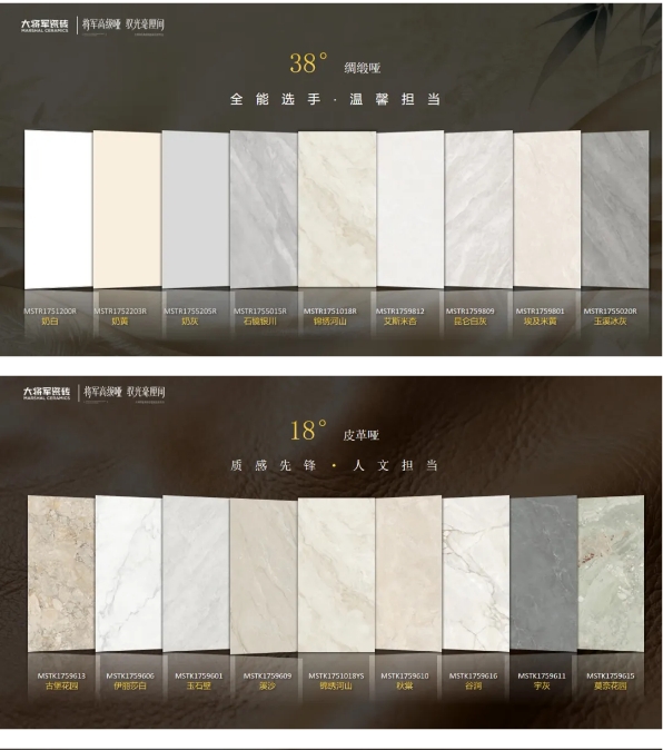 本次隆重推出的数十款全新力作,融合金丝绒、复刻釉、超细干粒等前沿工艺,从纹理、触感、光感三大维度,重新定义瓷砖美学标准。独创38°、18°、8°三级光感调控系统,于毫厘之间精研质感,于光影流转中掌控空间情绪——或温润如玉,或深邃静谧,或素雅纯粹,精准匹配多元空间气质,赋予居所恰到好处的高级感与艺术氛围。