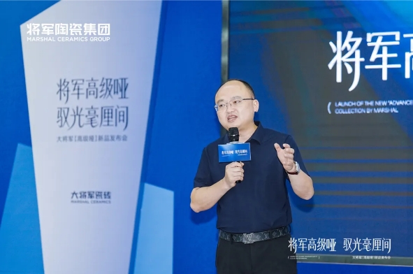 随后,佛山市陶瓷行业协会会长尹虹博士从行业维度深度解读“高级哑”的技术突破与市场价值。他指出,“高级哑”是光感美学的进阶表达,亦是功能与质感协同演进的典范。其背后所体现的精密工艺与用户思维,标志着陶瓷品类在审美升级与性能革新上的又一次重要跃迁。这既是对大将军创新实力的高度认可,也为整个行业树立了新的标杆。