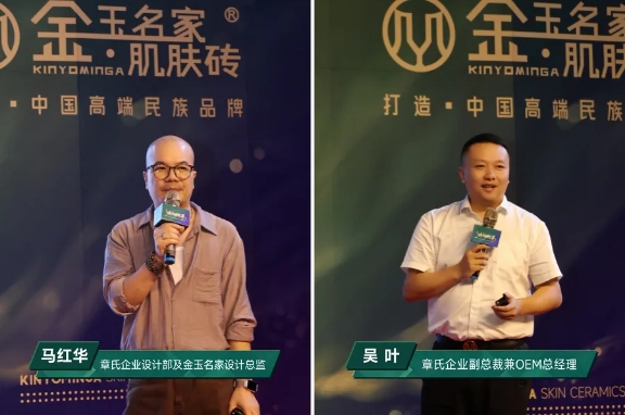 金玉名家肌肤砖销售一部总经理合伙人邓钰在开场致辞中强调,本次新品发布是品牌实现与服务商价值共赢的关键部署,将为终端业绩提升提供坚实保障。