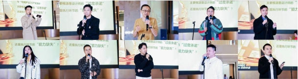 紧接着进入到设计师激辩环节,10位设计师代表分为金银两方,围绕设计领域的核心议题展开了激烈的观点交锋。双方辩手结合专业理论与实战经验,从用户需求、设计边界、设计目标等多个维度进行论证,现场金句频出,媒体老师也对设计师观点作出'犀利'点评。