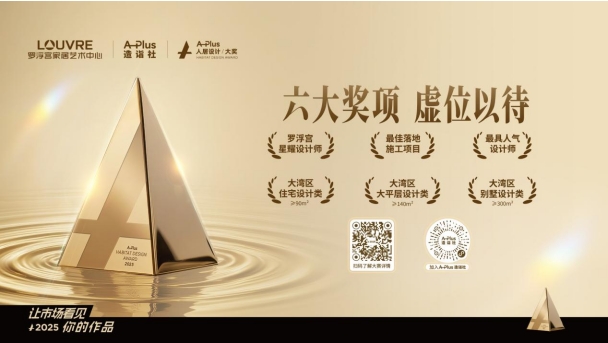 “罗浮宫A-plus人居设计大奖”旨在为设计师提供展示才华、链接资源、拓展边界的舞台,同时成为业主邂逅理想家居的灵感源地。大赛面向全国设计师征集作品,赛事周期涵盖5月至11月的作品征集与初评、11月至12月的入围名单公示、12月至次年1月的复评与网络投票,以及次年1月起举办的年度颁奖盛典与获奖作品巡展。