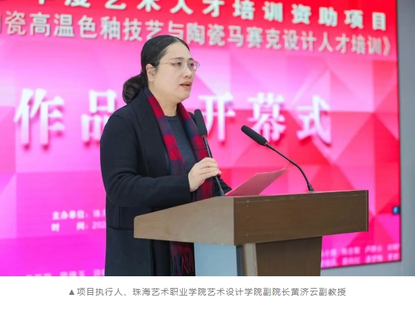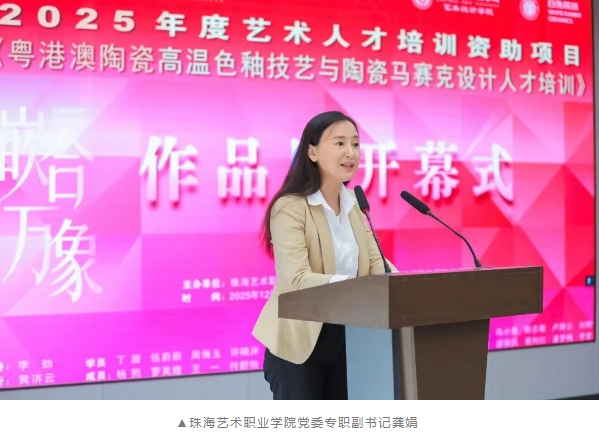 珠海艺术职业学院党委专职副书记龚娟从艺术教育战略高度指出,项目与旭日陶瓷的全程深度合作,构建了一个“文化+设计+产业”的生态闭环,让我们的教学与创作不再是空中楼阁。期待各位学员将凝聚着才情与智慧的“灵光碎片”,融入大众日常生活,镶嵌到城市建设的蓝图中,讲好中国故事,绘就更美好的事业前景。