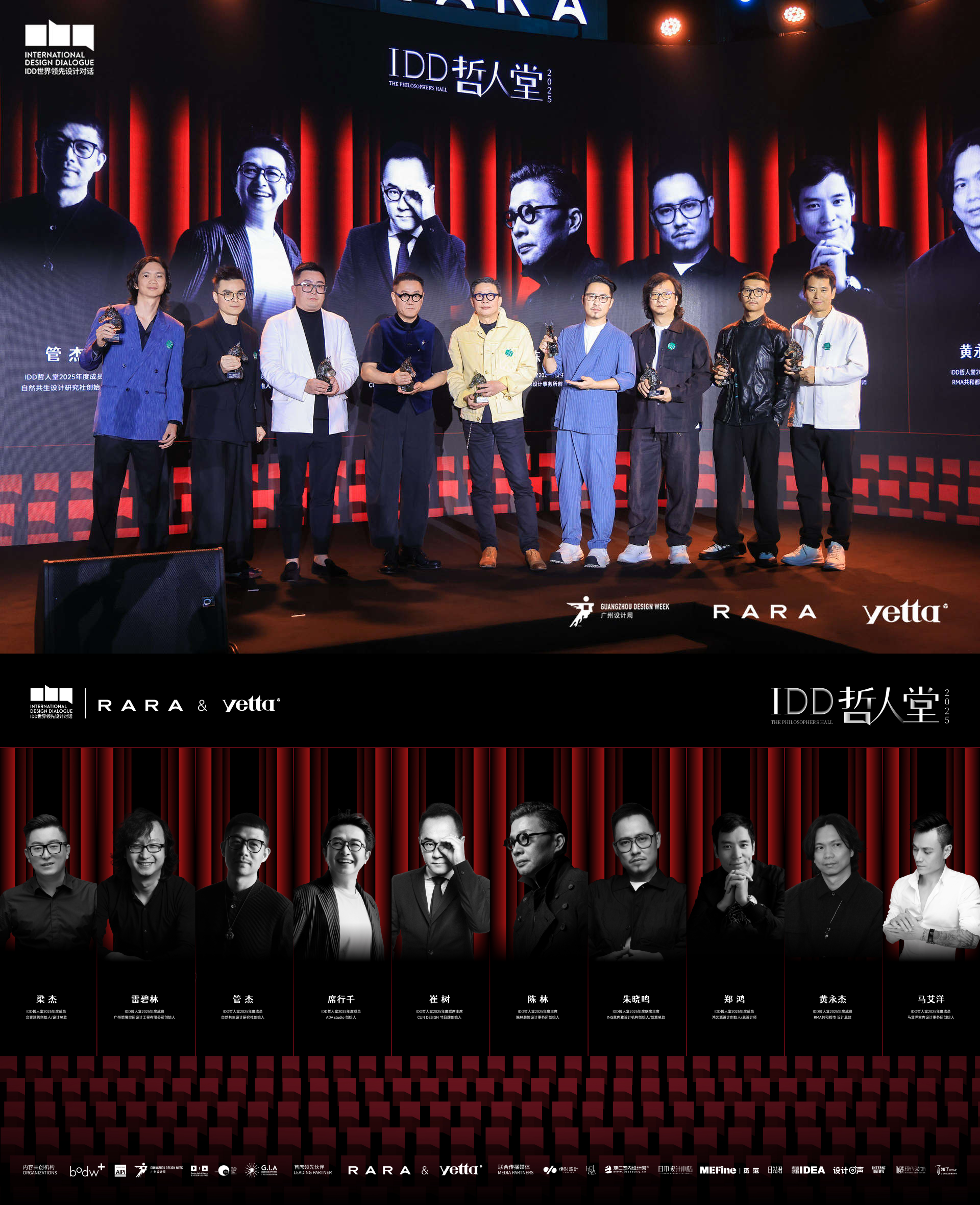 当晚,由广州设计周与RARA联合主办的「RARA之夜-IDD世界领先设计对话2025年度盛宴」以再次领先为主题于12月6日在广州文华东方酒店举办,现场发布了IDD2025主宾城市——深圳,《领先深圳,圳在设计时》纪录片、以及揭晓了IDD2025哲人堂年度主席、联席主席以及年度成员,以及为IDD设计100榜授予荣誉奖杯;