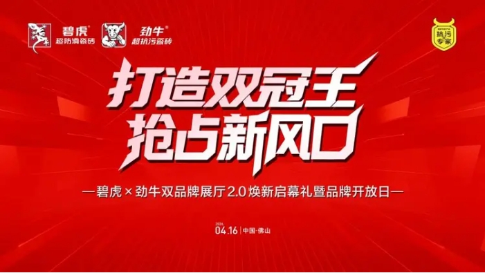 在陶瓷行业从“规模扩张”全面转向“功能细分+价值竞争”的关键转型期,4月14日至16日,碧虎集团在佛山连续举办三场重磅行业盛会,以劲牛超抗污瓷砖品牌战略发布、全国经销商AI终端赋能特训营、碧虎×劲牛双品牌展厅2.0焕新启幕为核心,完成了从战略布局、终端赋能到场景体验的全链条闭环,正式宣告“碧虎守防滑、劲牛保抗污”的家居安全无忧双赛道战略全面落地。这场集战略升级、数字赋能与沉浸式体验于一体的系列活动,为陶瓷行业摆脱同质化竞争、迈向高质量发展提供了可借鉴的全新实践路径。